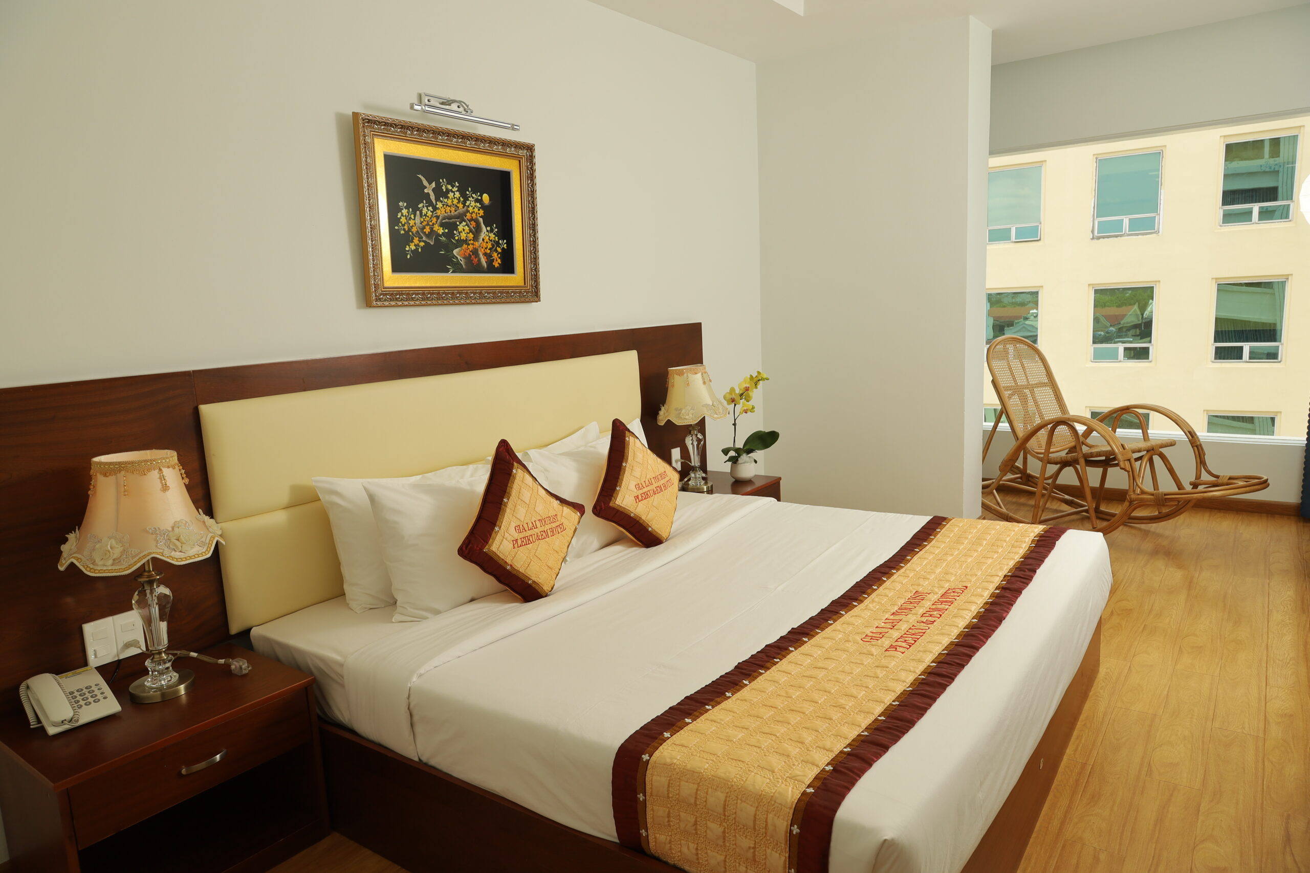 Phòng Deluxe được thiết kế tinh tế, sang trọng với đầy đủ tiện nghi hiện đại, cửa sổ rộng, thoáng bao quát toàn cảnh thành phố mang đến cho bạn một không gian thanh bình và dễ chịu. Đây sẽ là sự lựa chọn tuyệt vời cho những doanh nhân và khách du lịch.
